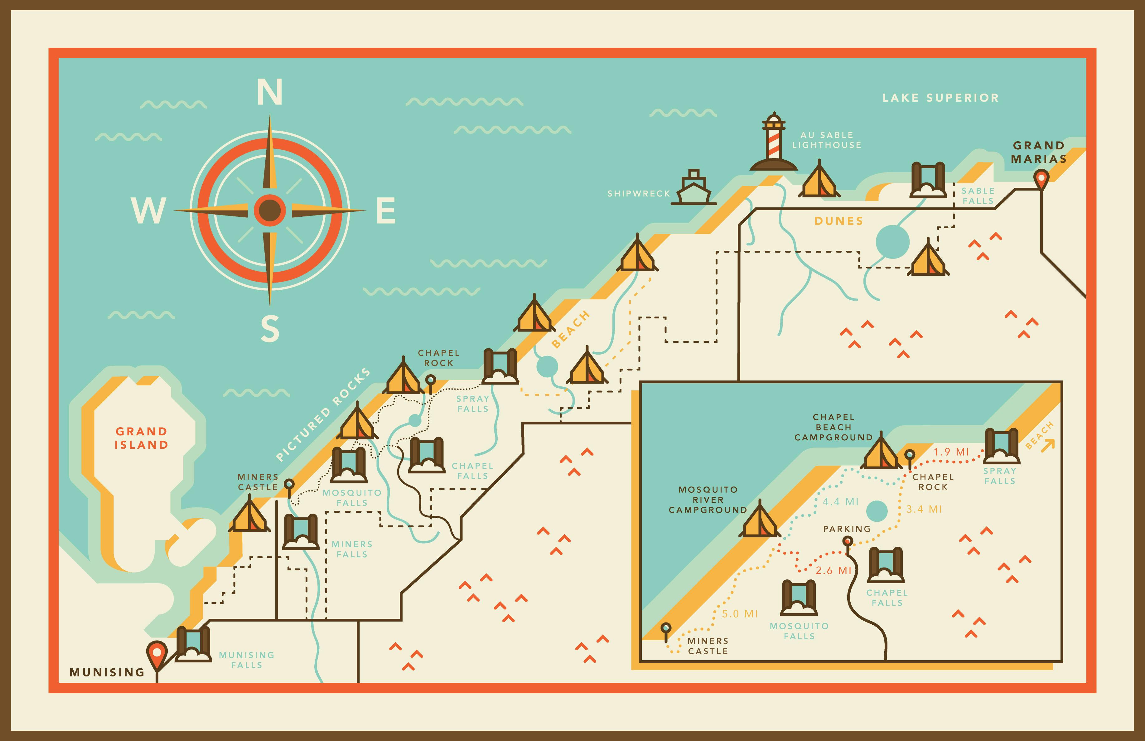 The first map is for Pictured Rocks National Lakeshore, where we hiked about 25 miles along Lake Superior.