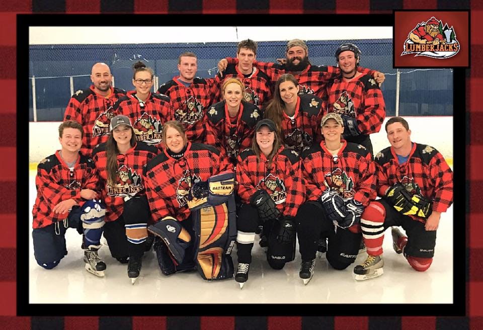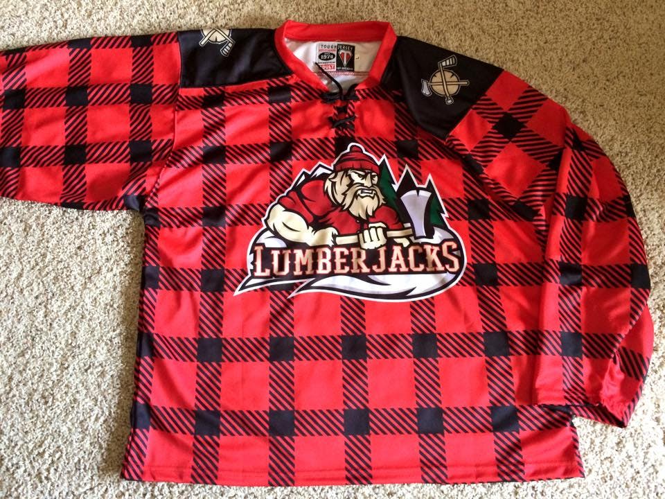 I recently joined a new co-ed beer league hockey team called the Lumberjacks. They had already picked out some awesome red and black plaid jerseys, but they still needed a logo. Here's how the jerseys turned out: